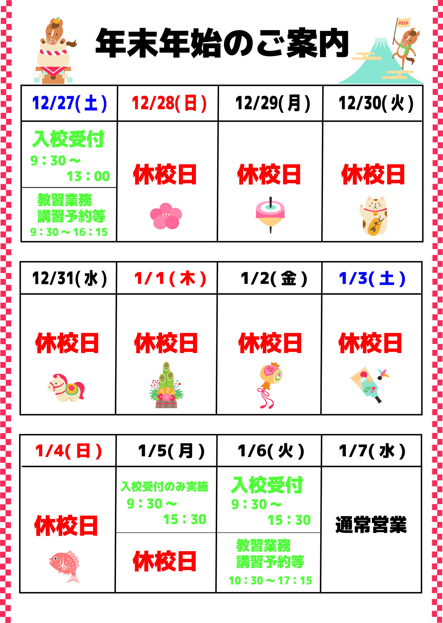 年末年始のご案内