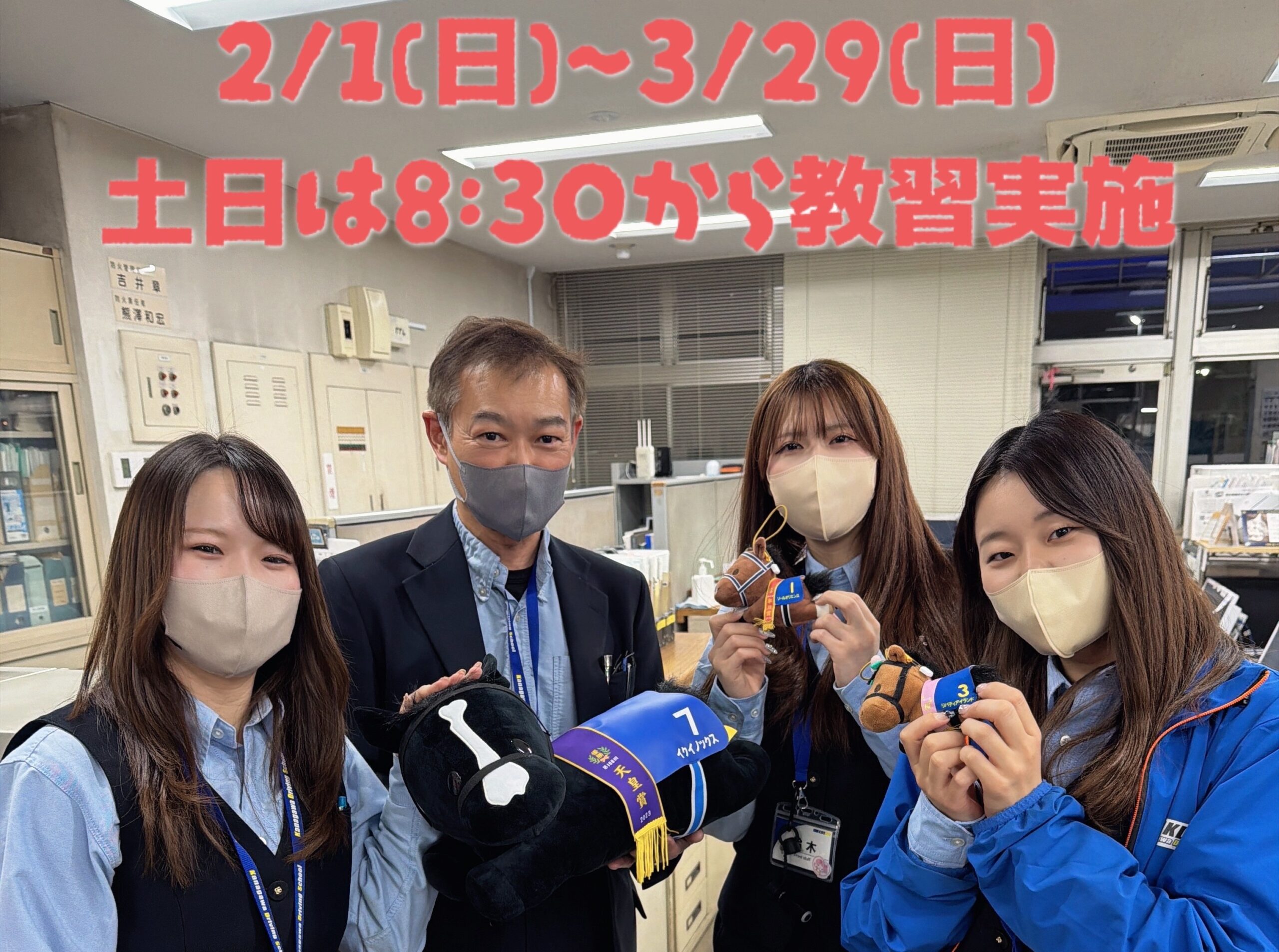 教習時間延長のお知らせ 2026.01.08 2/1(日)~3/29(日)の土日は朝8:30より普通車の教習を実施いたします! 送迎バスは通常通り9:30の教習より運行をいたしますのでご注意ください。 この時間も活用して教習を進めていきましょう! ← 一覧へ戻る