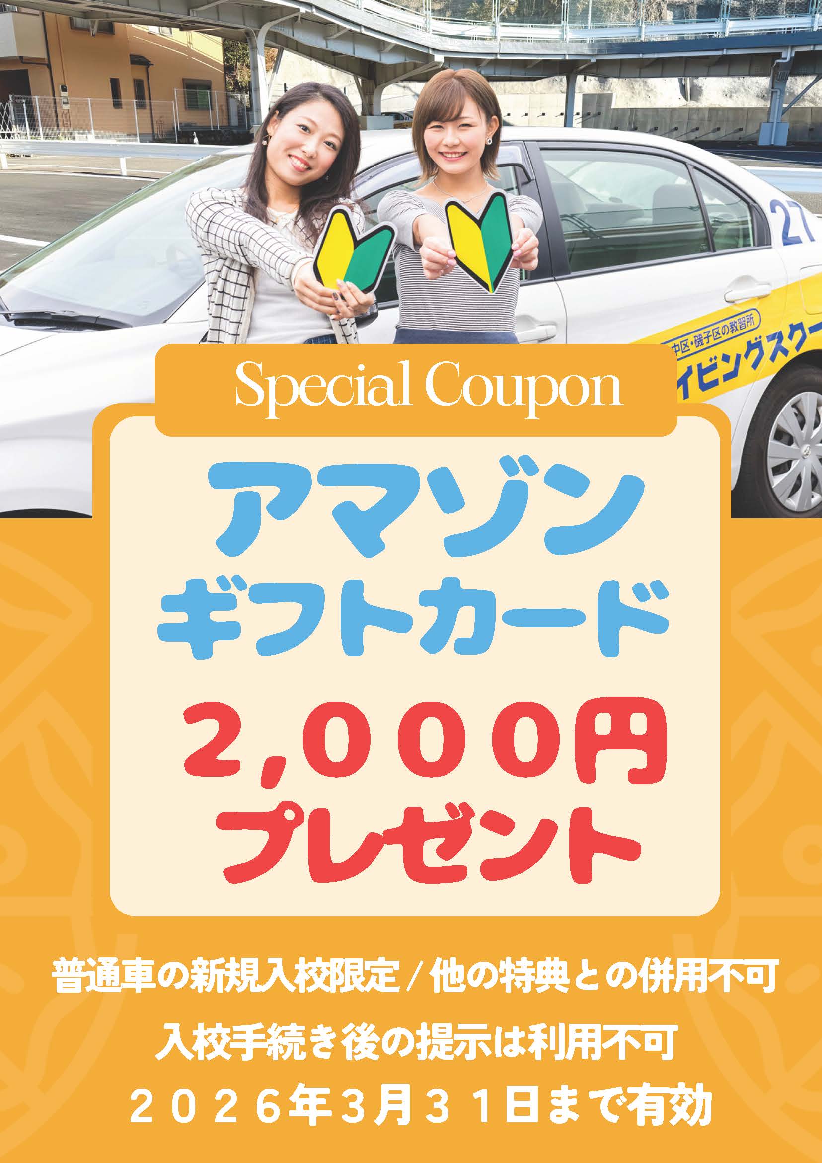 【普通車の新規入校限定】